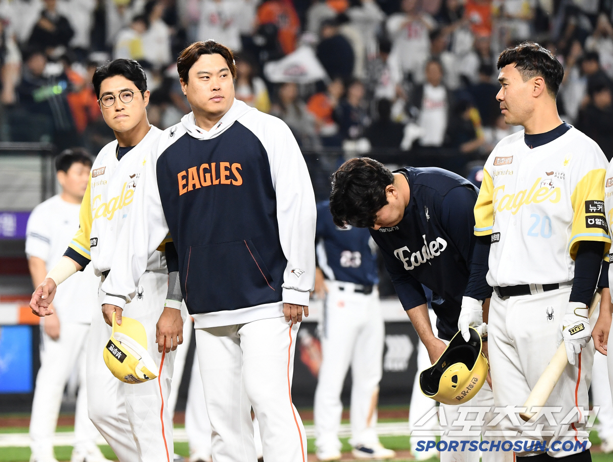 13일 대전 한화생명볼파크에서 열린 두산-한화전. 연장 11회 승부끝에 3대4로 패한 한화 선수들이 관중에게 인사하고 있다. 류현진이 시원섭섭한 표정을 짓고 있다. 대전=정재근 기자 cjg@sportschosun.com