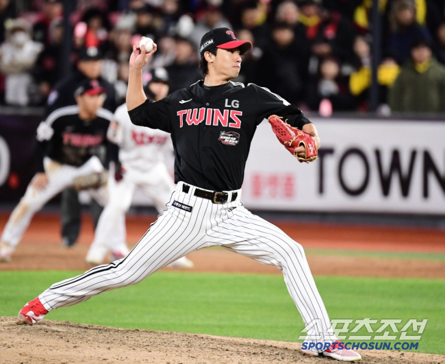 11일 수원 케이티위즈파크에서 열린 한국시리즈 4차전 KT와 LG의 경기. 투구하고 있는 LG 이정용. 수원=송정헌 기자 songs@sportschosun.com/2023.11.11/