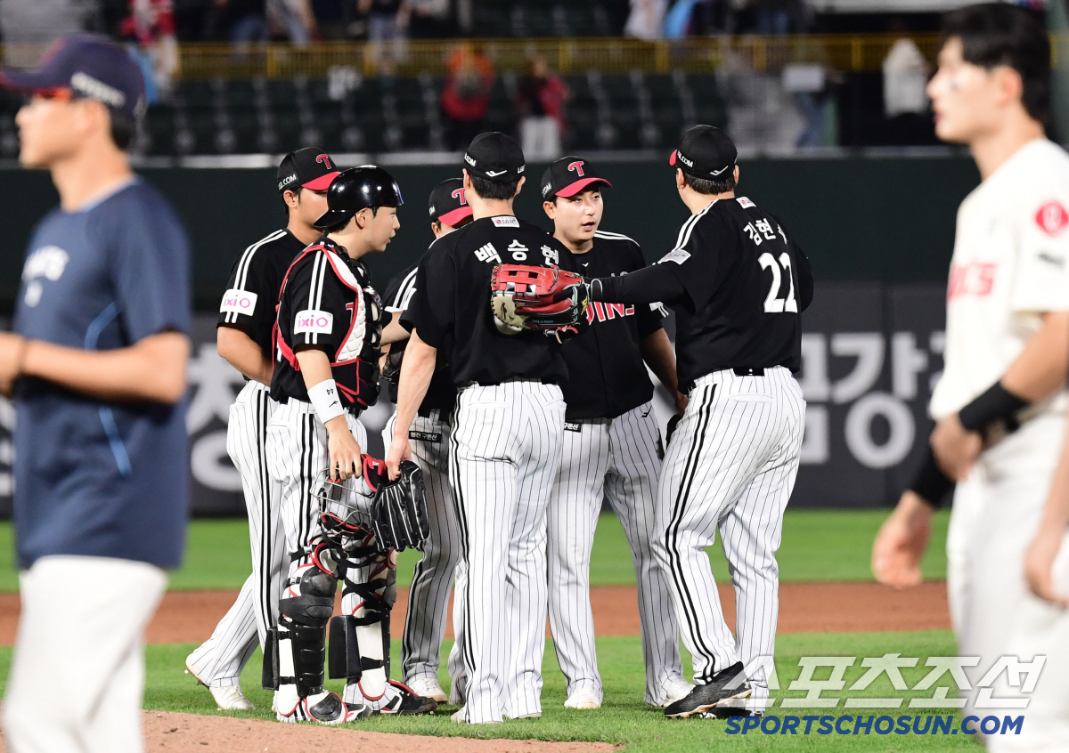 20일 부산 사직야구장에서 열린 KBO리그 롯데와 LG의 경기. LG가 롯데에 승리했다. 경기 종료 후 승리의 기쁨을 나누고 있는 LG 선수들. 부산=송정헌 기자songs@sportschosun.com