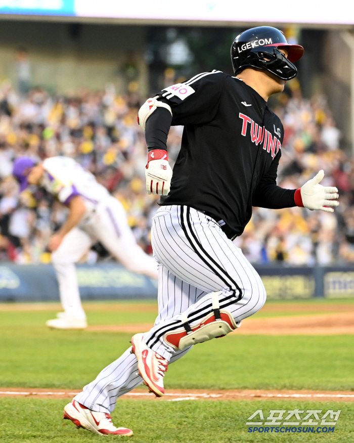 [부산=스포츠조선 권인하 기자]LG 트윈스의 4번 타자 문보경의 무릎 통증이 긴장해야할 상황이다.