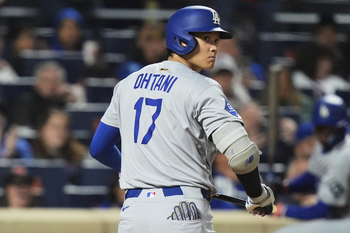 LA 다저스 오타니 쇼헤이가 25일(한국시각) 뉴욕 메츠와의 원정경기에서 8회 삼진을 당하고 돌아서고 있다. AP연합뉴스