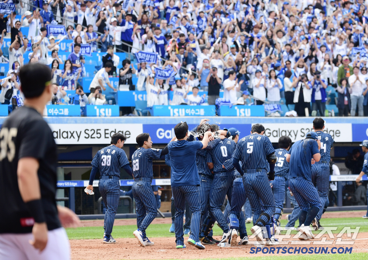 25일 대구 삼성라이온즈파크에서 열린 KBO리그 삼성과 KIA의 경기. 9회말 삼성 디아즈가 끝내기 홈런을 날렸다. 동료들과 함께 기뻐하는 디아즈. 대구=송정헌 기자songs@sportschosun.com