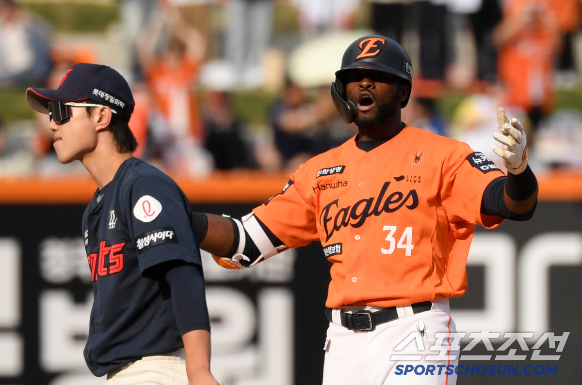25일 대전 한화생명볼파크에서 열린 한화 이글스와 롯데 자이언츠의 경기. 9회말 한화 플로리얼이 안타를 날린 뒤 환호하고 있다. 대전=박재만 기자 pjm@sportschosun.com