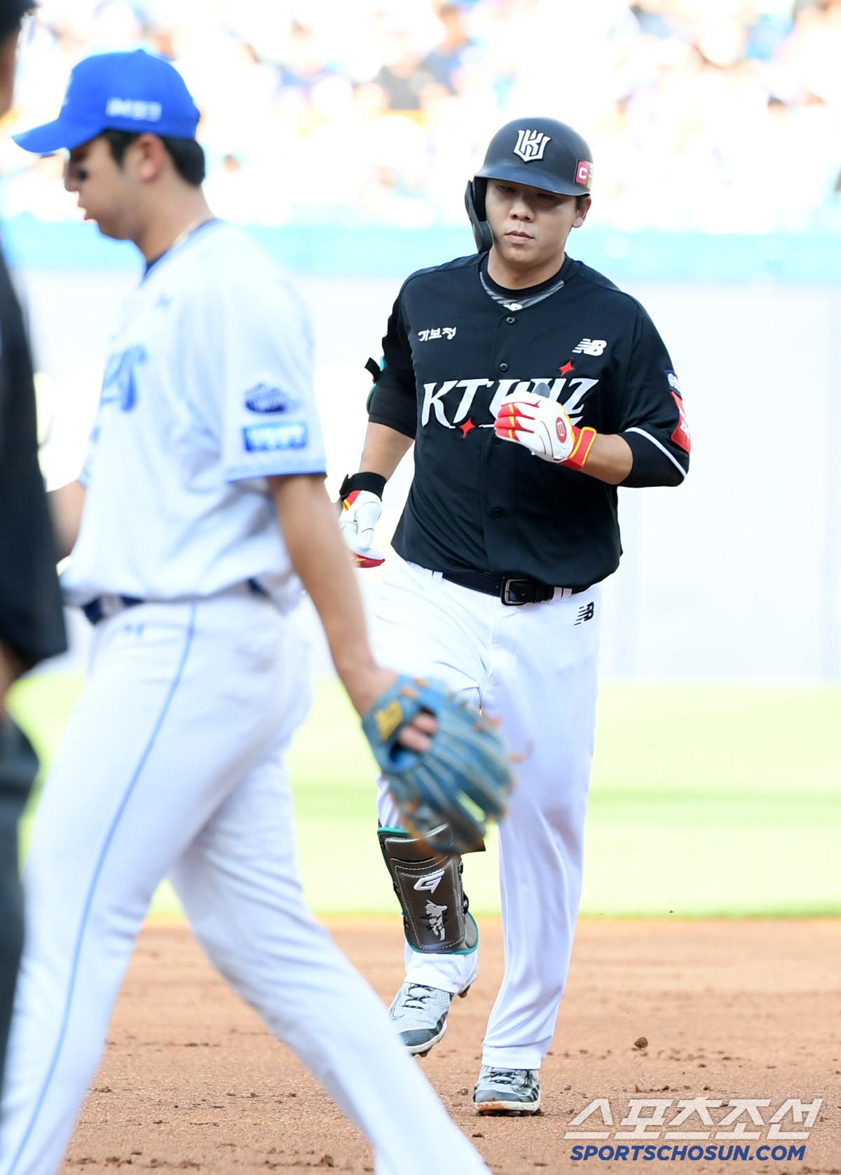 14일 대구 라이온즈파크에서 열린 삼성 라이온즈와 KT 위즈의 경기. 3회초 1사 2루 KT 이정훈이 투런포를 날린 뒤 환호하고 있다. 대구=박재만 기자 pjm@sportschosun.com