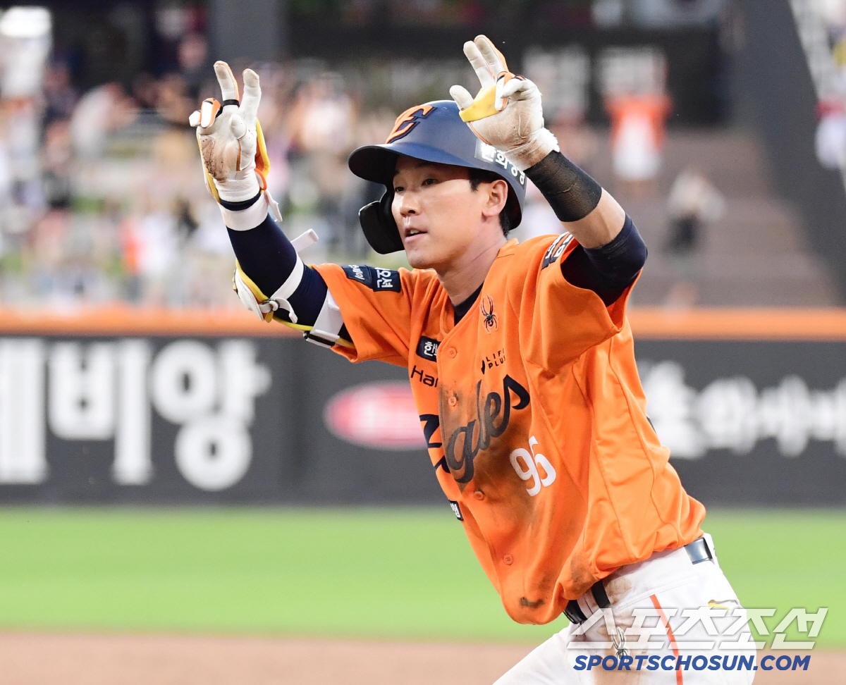 14일 대전 한화생명볼파크에서 열린 한화와 LG의 경기. 7회말 1사 1, 3루. 1타점 스퀴즈번트를 성공시킨 한화 황영묵. 대전=송정헌 기자songs@sportschosun.com