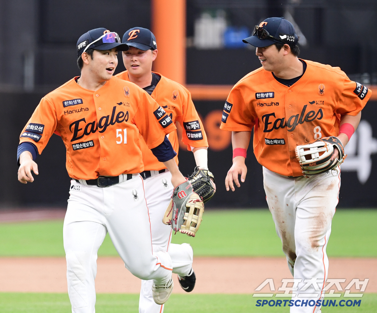 15일 대전 한화생명볼파크에서 열린 한화와 LG의 경기. 5회 2사 2루. 이주헌 안타 때 2루 주자 문성주가 홈에서 아웃 됐다. 홈 보살을 성공시킨 한화 문현빈 좌익수. 대전=송정헌 기자songs@sportschosun.com