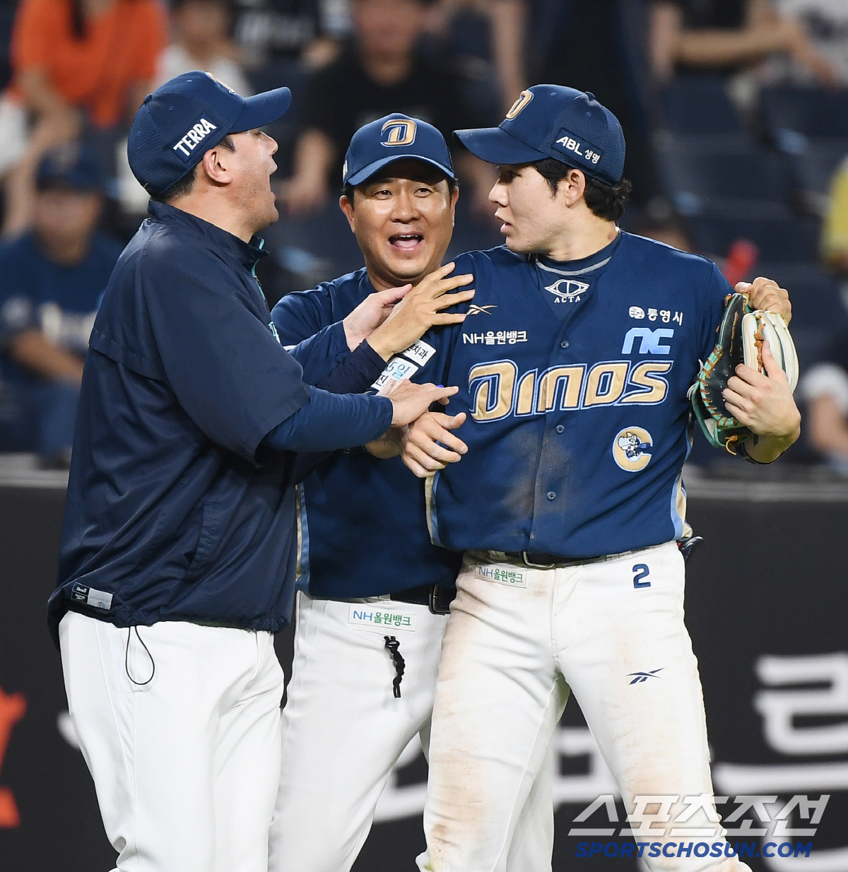 3일 대전 한화생명볼파크에서 열린 NC-한화전. 10회말 1사 1, 3루 노시환의 2루수 플라이 때 박민우가 포구 후 송구동작에서 공을 떨어뜨리며 실점했다. 이후 1루주자 문현빈의 2루 진루를 인정하자 박민우가 항의하고 있다. 대전=정재근 기자 cjg@sportschosun.com