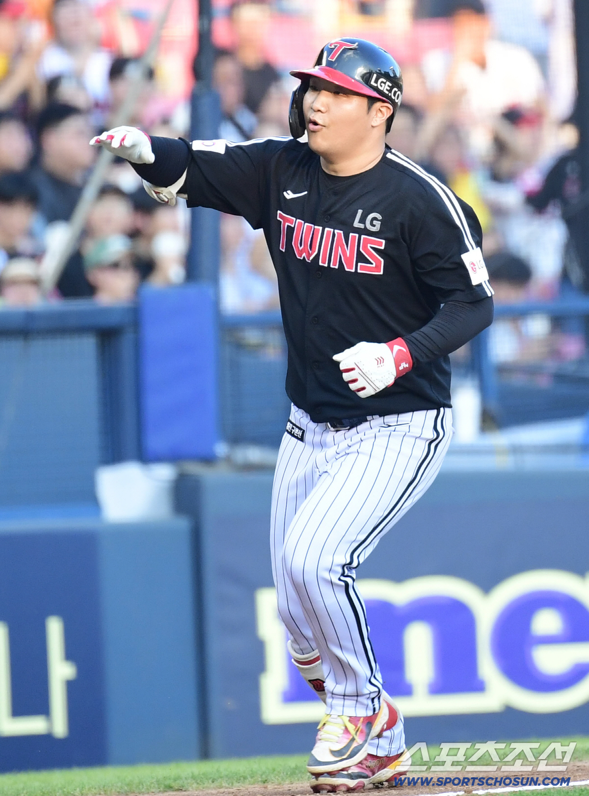 [포토] 문보경 '기분 짜릿한 3점 홈런포'