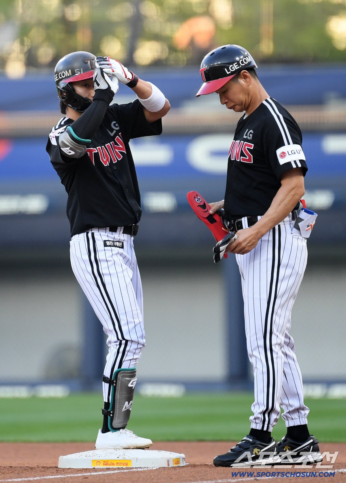 22일 광주 기아챔피언스필드에서 열린 KIA 타이거즈와 LG 트윈스의 경기. LG 신민재가 안타를 날린 뒤 환호하고 있다. 광주=박재만 기자 pjm@sportschosun.com