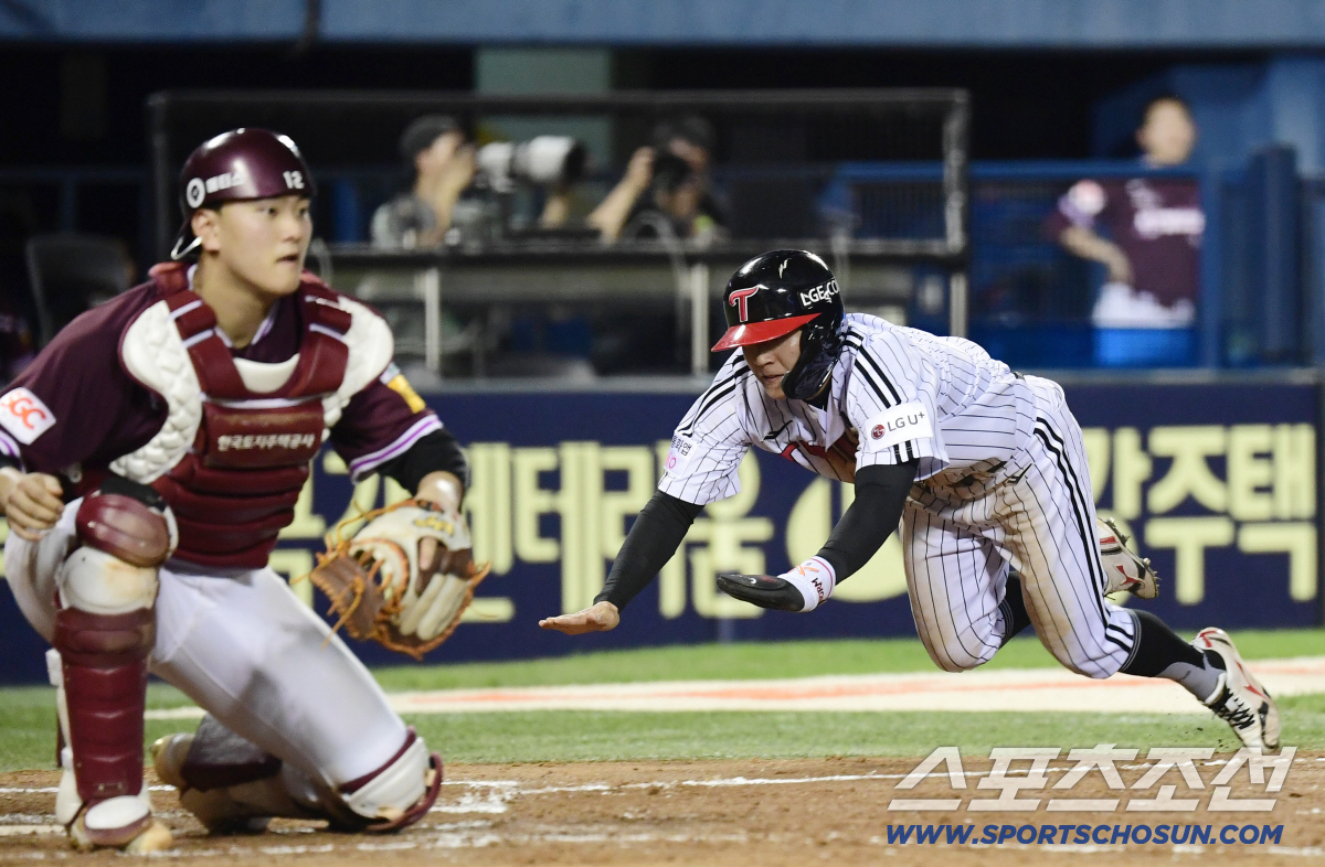 30일 잠실구장에서 열린 LG와 키움의 경기. 4회말 박해민 적시타 때 득점에 성공한 최원영. 잠실=송정헌 기자songs@sportschosun.com