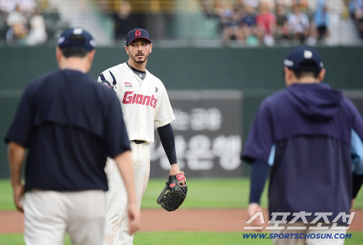 롯데는 1회초 2사 2루에서 벨라스케즈를 내리고 이민석을 올렸다. 이민석이 추가 실점 없이 이닝을 막아 벨라스케즈의 실점은 5점에서 멈췄다.