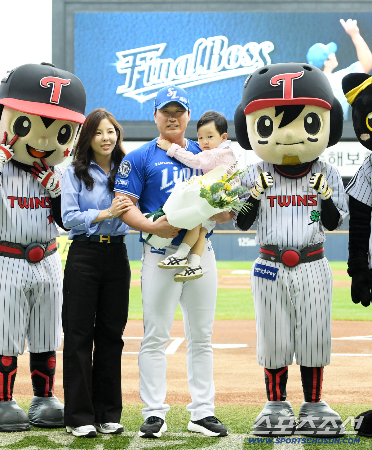 20일 잠실구장에서 열린 LG 트윈스와 삼성 라이온즈의 경기를 앞두고 오승환 은퇴 투어가 진행됐다. 오승환이 가족들과 기념촬영을 하고 있다. 잠실=박재만 기자 pjm@sportschosun.com/2025.09.20/