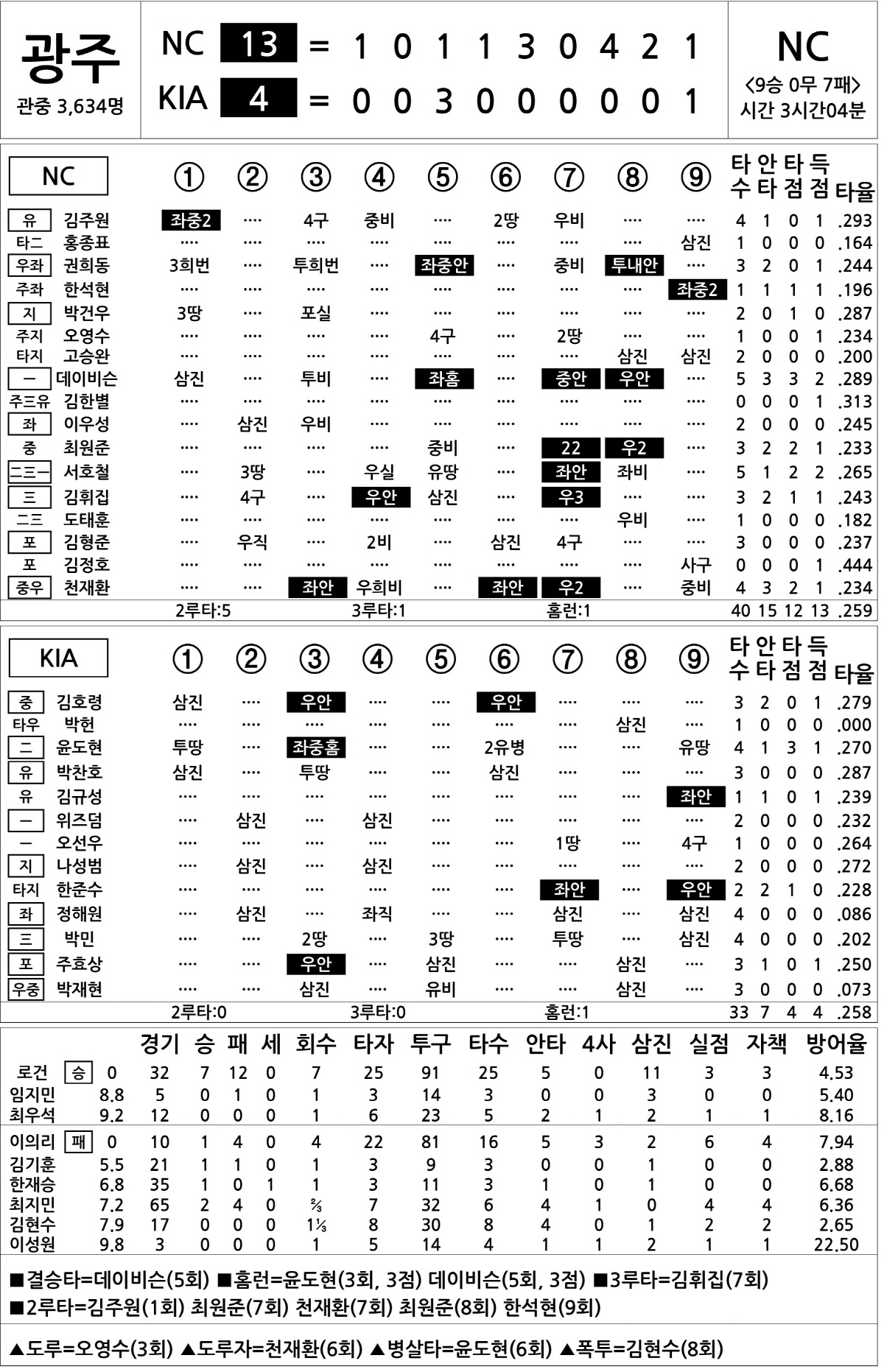[2025 KBO리그 기록실] NC vs KIA (9월 29일)
