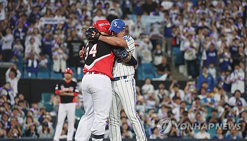 헛스윙 삼진으로 마지막 대결을 마친 최형우는 마운드로 올라가 오승환을 안아줬고, 경기장을 가득 메운 관중들은 기립해 손뼉 치거나 휴대전화로 두 선수의 모습을 담았다.