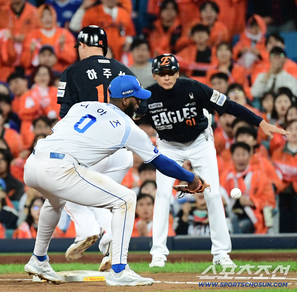 21일 대구 삼성라이온즈파크에서 열린 삼성과 한화의 PO 3차전. 2회 기습적인 내야안타를 성공시키는 한화 하주석. 대구=송정헌 기자songs@sportschosun.com
