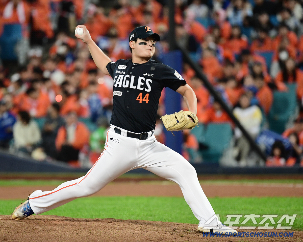 절치부심 4차전 4회부터 일찍 몸을 풀기 시작한 김서현은 팀이 4대 1로 앞선 상황에 마운드에 나섰다.
