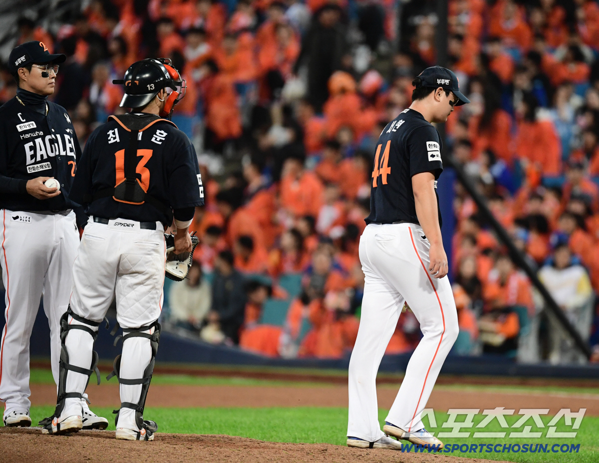 6회말을 앞두고 한화의 4-0 리드. 한국시리즈 진출을 떠올릴 때쯤 한화는 동점을 허용했다.