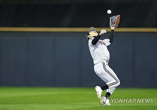 신민재는 외야 쪽을 향해 전력 질주한 뒤 낙구 지점을 향해 몸을 던졌다.