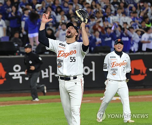 한화의 KS 진출을 확정하는 공을 던진 와이스는 강하게 포효하며 대전 홈팬들의 함성을 끌어냈다.