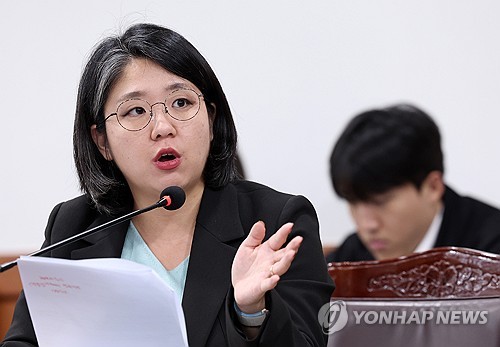 (춘천=연합뉴스) 양지웅 기자 = 24일 강원경찰청에서 열린 국회 행정안전위원회의 강원경찰청에 대한 국정감사에서 기본소득당 용혜인 의원이 질의하고 있다. 2025.10.24 yangdoo@yna.co.kr