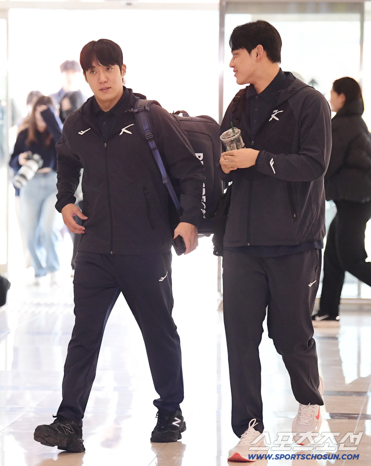 [김포공항=스포츠조선 송정헌 기자] 잘생긴 문동주 옆에 잘생긴 원태인이 함께 미소 지었다.
