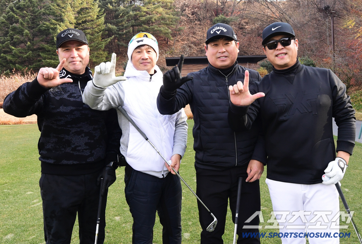스포츠조선과 KBO(한국야구위원회)가 공동 주최하고 우승팀 LG 트윈스가 후원하는 제42회 야구인골프대회가 경기도 이천 H1클럽에서 열렸다. 기념 포즈를 취하고 있는 SSG 곽현희, 윤재국, 이승호, 송신영 코치. 이천=송정헌 기자songs@sportschosun.com