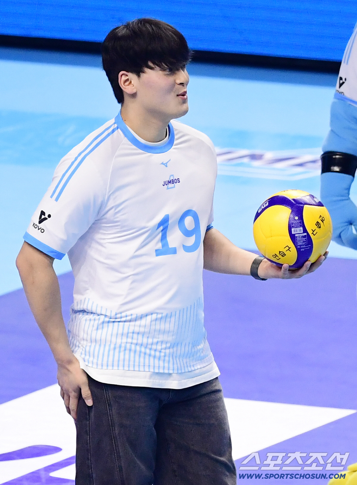 조병현은 경기 전 시구자로 코트에 섰다. 은근히 어렵다는 배구 서브. 조병현은 완벽하게 상대 코트로 공을 넘기는데 성공했다.