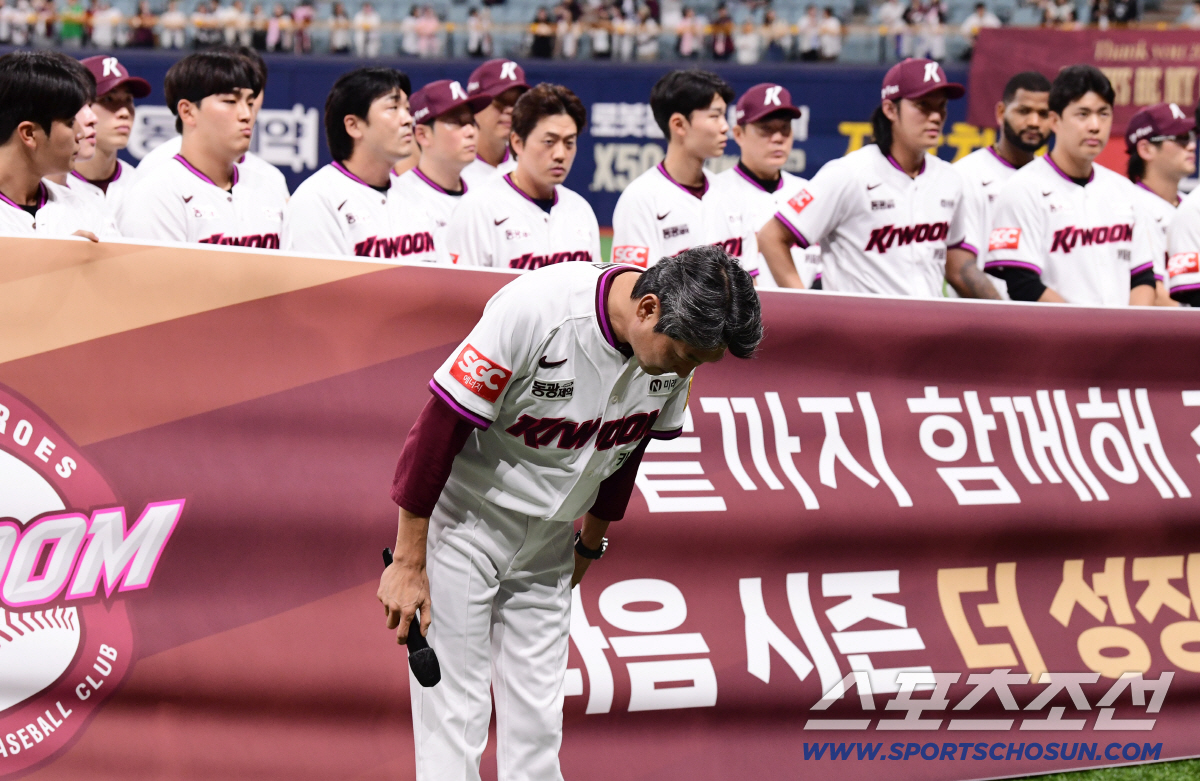 30일 서울 고척돔에서 열린 KBO리그 키움과 SSG의 경기. 경기 종료 후 올 시즌을 마친 키움 선수들이 팬들에게 인사를 했다. 팬들에게 인사하는 설종진 감독. 고척=송정헌 기자songs@sportschosun.com/2025.09.30/