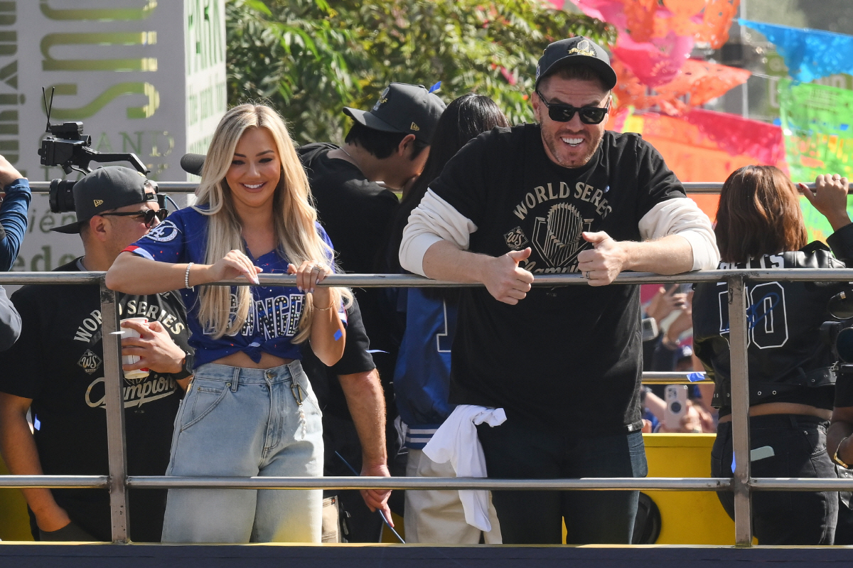 | LA 다저스 월드시리즈 우승 카퍼레이드에 참가한 프레디 프리먼 부부. AP연합뉴스 |