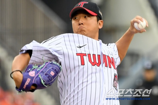 26일 잠실야구장에서 열린 KIA와 LG의 경기, LG 선발투수 김윤식이 역투하고 있다. 잠실=허상욱 기자wook@sportschosun.com/2024.04.26/