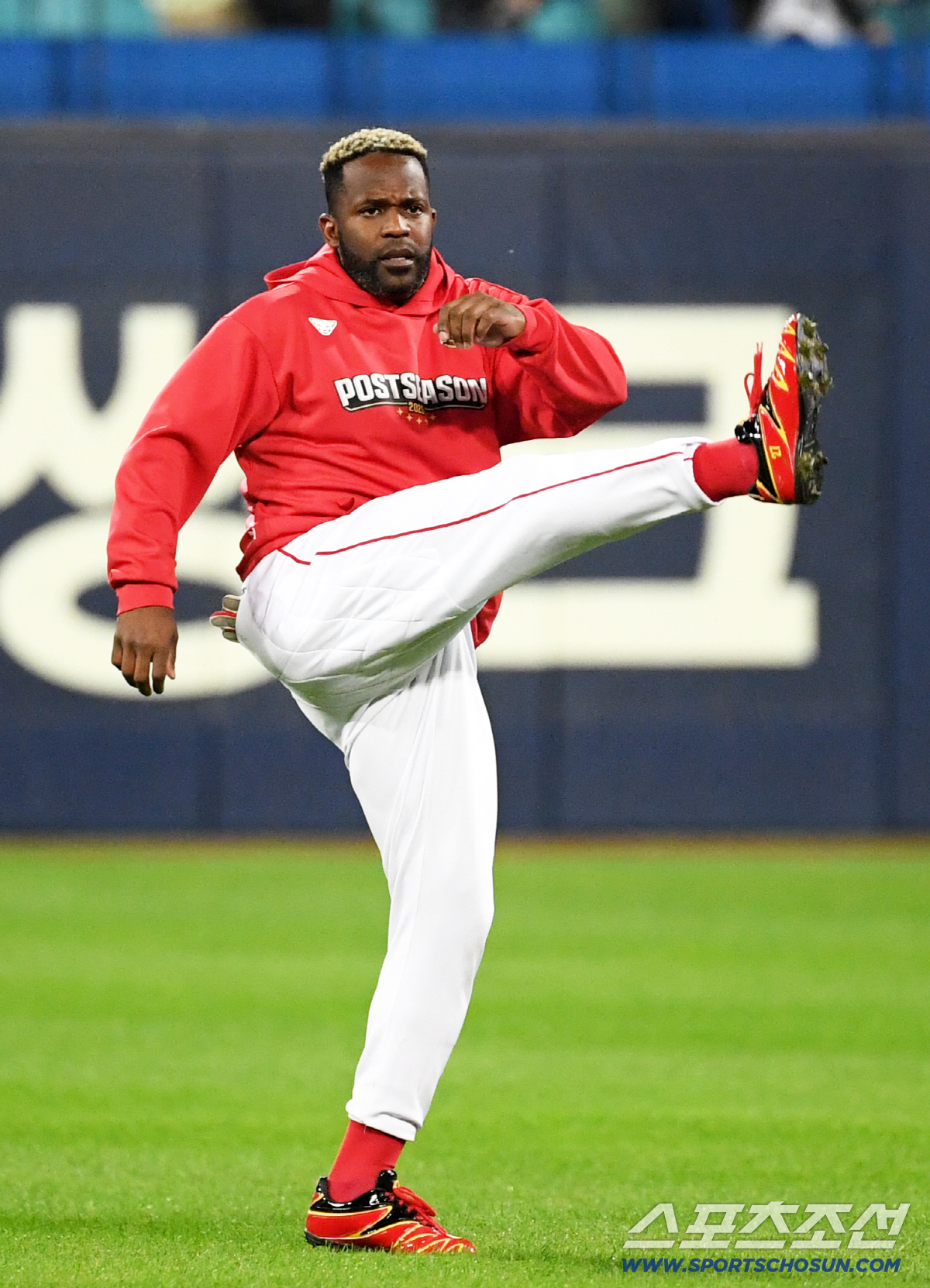 13일 대구 라이온즈파크에서 열린 삼성과 SSG의 준PO 3차전. SSG 에레디아가 몸을 풀고 있다. 대구=박재만 기자 pjm@sportschosun.com/2025.10.13/