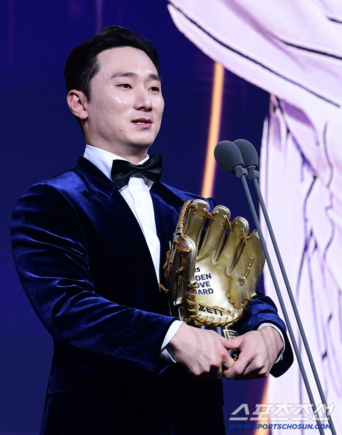 9일 서울 롯데호텔월드에서 KBO 골든글러브 시상식이 열렸다. 2루수 부문 골든글러브를 수상한 LG 신민재. 잠실=송정헌 기자songs@sportschosun.com/2025.12.09/
