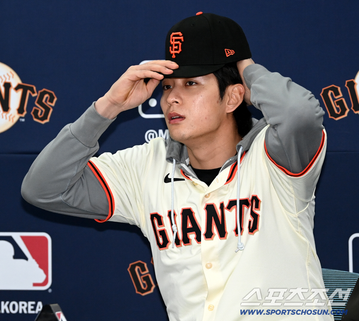 미국 메이저리그 샌프란시스코 자이언츠 이정후가 7일 이천 LG챔피언스파크에서 열린 미디어데이에서 기자회견을 가졌다. 이날 기자회견에는 래리 베어 CEO, 버스터 포지 사장, 토니 비텔로 감독, 윌리 아다메스가 함께했다. 기자회견장에 입장하는 이정후의 모습. 이천=허상욱 기자wook@sportschosun.com
