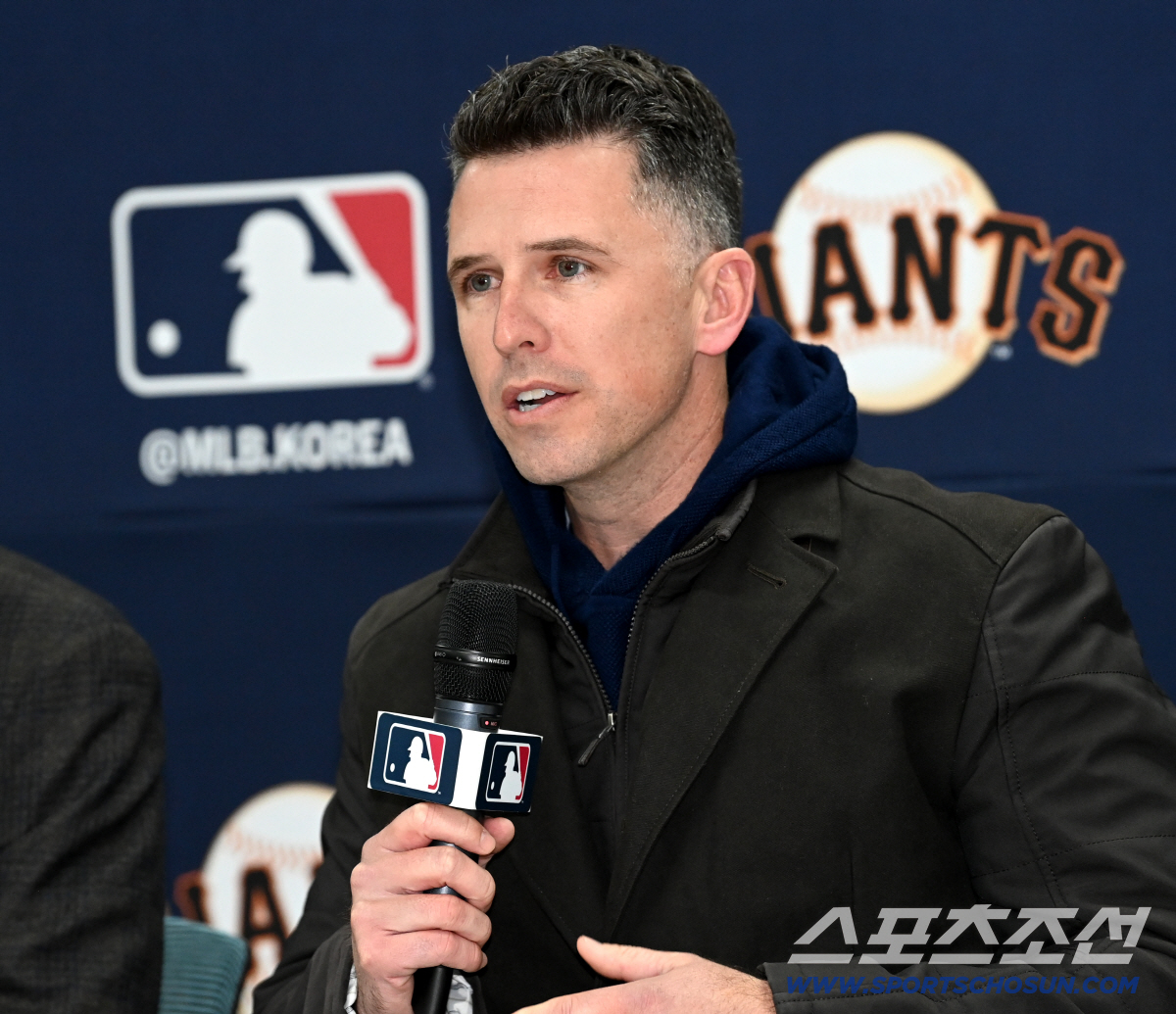 미국 메이저리그 샌프란시스코 자이언츠 이정후가 7일 이천 LG챔피언스파크에서 열린 미디어데이에서 기자회견을 가졌다. 이날 기자회견에는 래리 베어 CEO, 버스터 포지 사장, 토니 비텔로 감독, 윌리 아다메스가 함께했다. 인사말을 하는 버스터 포지 사장의 모습. 이천=허상욱 기자wook@sportschosun.com
