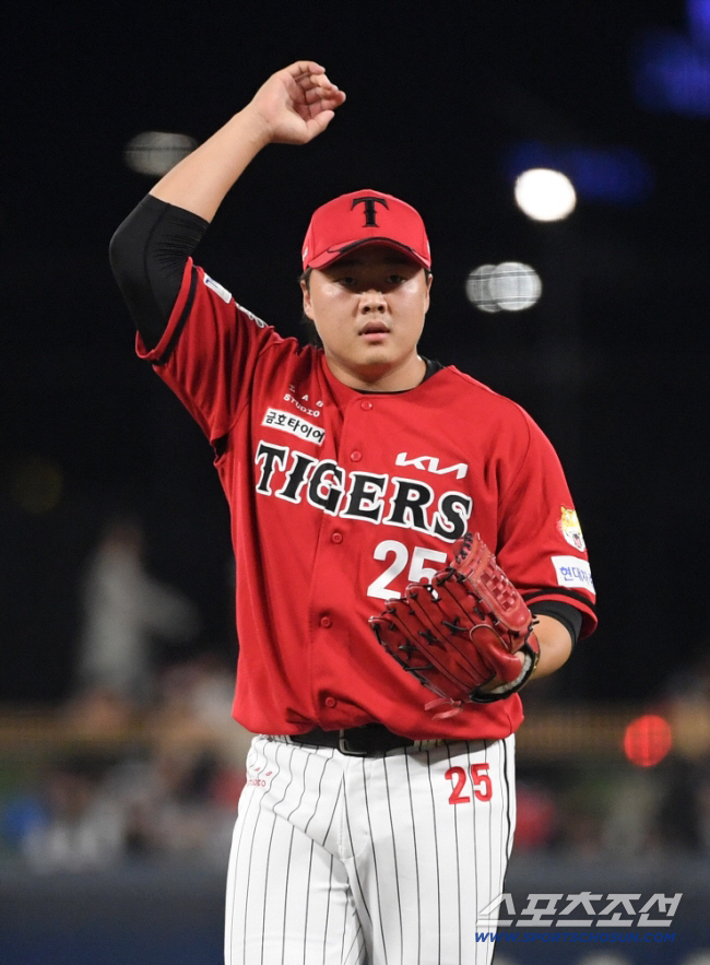 한재승은 이날 2대0 승리에 일조했다. 선발투수 제임스 네일의 6이닝 무실점 호투 이후 성영탁(1이닝)-한재승(1이닝)-전상현(1이닝)이 깔끔하게 팀 완봉승을 완성했다. 한재승은 KIA 이적 후 첫 홀드를 챙겼다. 심 단장은 더그아웃에서 한재승의 머리를 쓰다듬으며 축하했다.