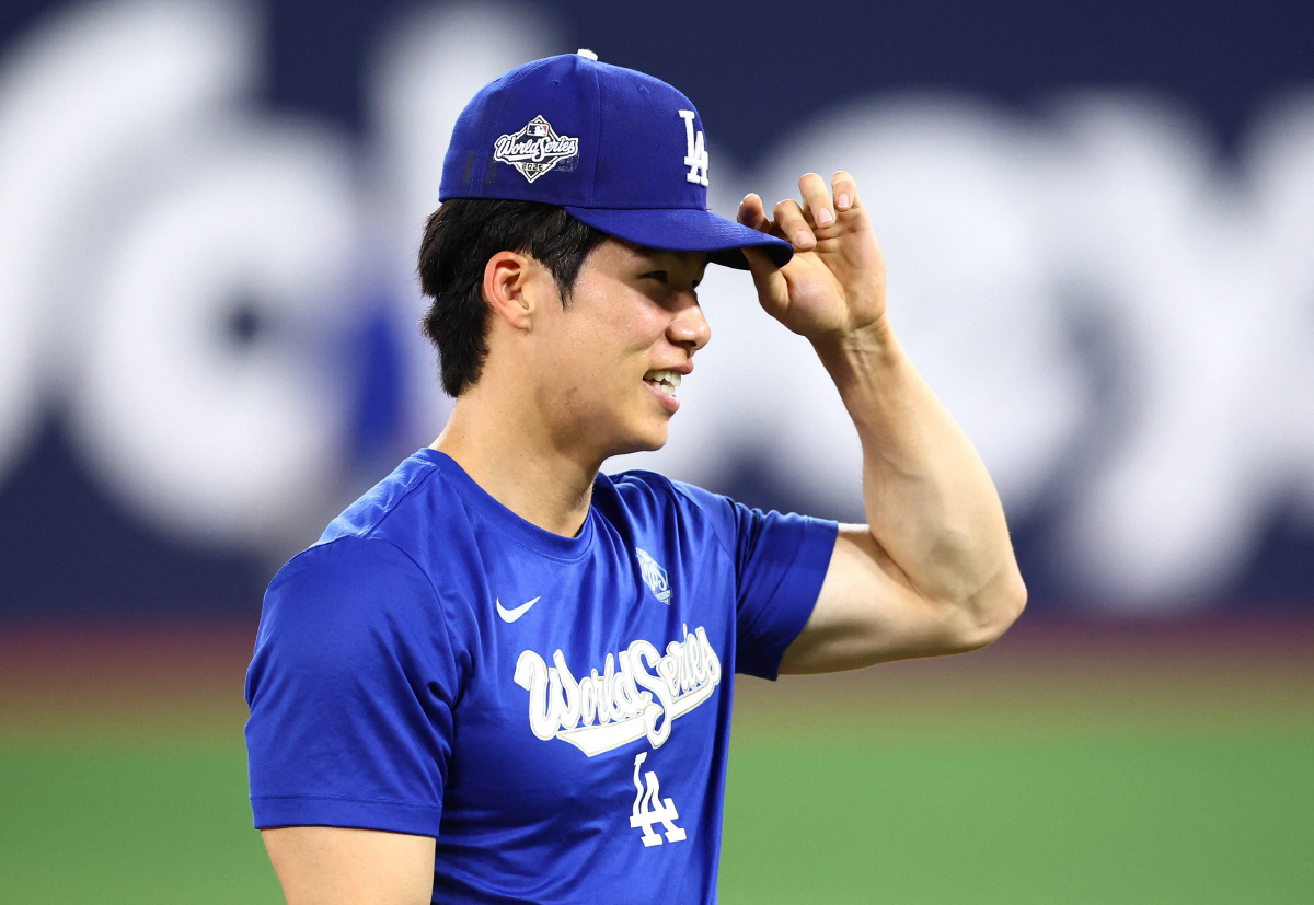 TORONTO, ON - OCTOBER 23: Hyeseong Kim #6 of the Los Angeles Dodgers throws a ball during World Series Workout Day at Rogers Centre on October 23, 2025 in Toronto, Ontario, Canada. Vaughn Ridley/Getty Images/AFP (Photo by Vaughn Ridley / GETTY IMAGES NORTH AMERICA / Getty Images via AFP) <저작권자(c) 연합뉴스, 무단 전재-재배포, AI 학습 및 활용 금지>