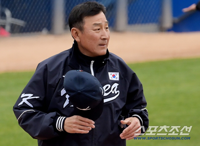 | 20일(한국시간) WBC 대표팀이 미국 애리조나 투손 키노 베테랑 메모리얼 스타디움에서 KIA 타이거즈와 연습경기를 했다. 경기 후 KIA 선수들과 인사를 나누고 돌아서는 김기태 코치. 애리조나(미국)=정재근 기자 cjg@sportschosun.com/2023.2.20/ |