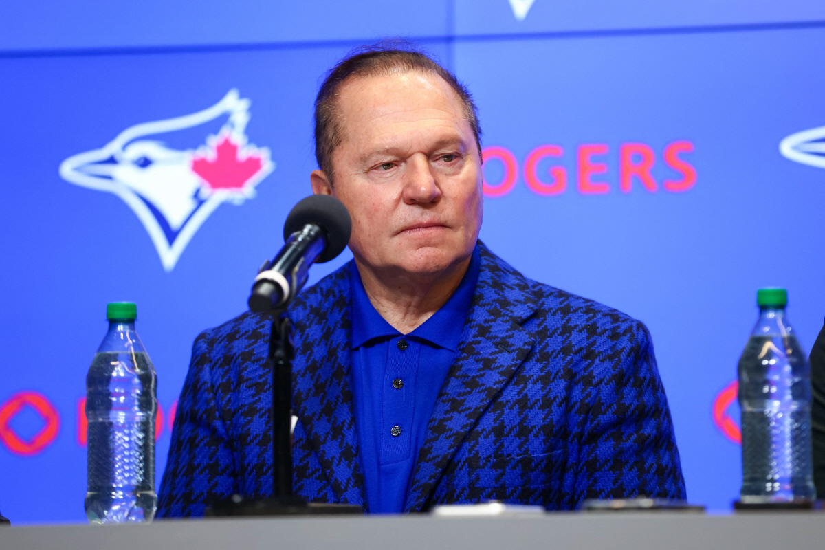 슈퍼 에이전트 스캇 보라스가 지난 7일(한국시각) 로저스센터 프레스룸에서 열린 일본인 타자 오카모토 가즈마의 토론토 블루제이스 입단 기자회견에 참석해 경청하고 있다. AFP연합뉴스
