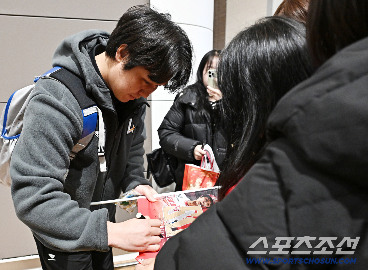 19일 오전 SSG 랜더스 선수들이 인천공항 제 2터미널을 통해 1차 캠프지 미국 플로리다로 출국했다. 팬들에게 사인을 해주고 있는 최정. 인천공항=송정헌 기자songs@sportschosun.com