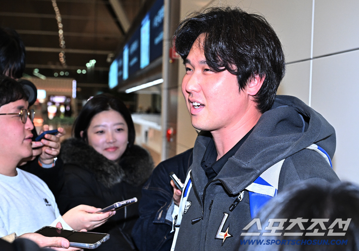 19일 오전 SSG 랜더스 선수들이 인천공항 제2터미널을 통해 1차 캠프지 미국 플로리다로 출국했다. 기자들 인터뷰에 응하고 있는 최정. 인천공항=송정헌 기자songs@sportschosun.com