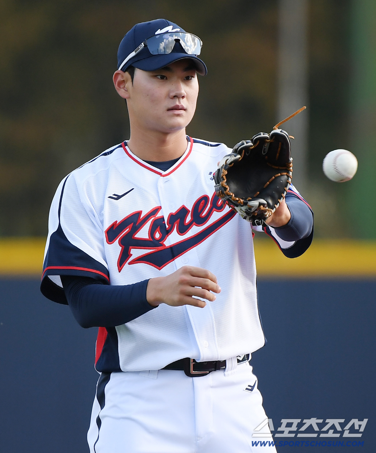 야구 국가대표팀이 2일 오후 경기도 고양 야구대표팀 훈련장에서 첫 훈련을 시작했다. 김주원이 수비 훈련을 하고 있다. 고양=정재근 기자 cjg@sportschosun.com/2025.11.2/