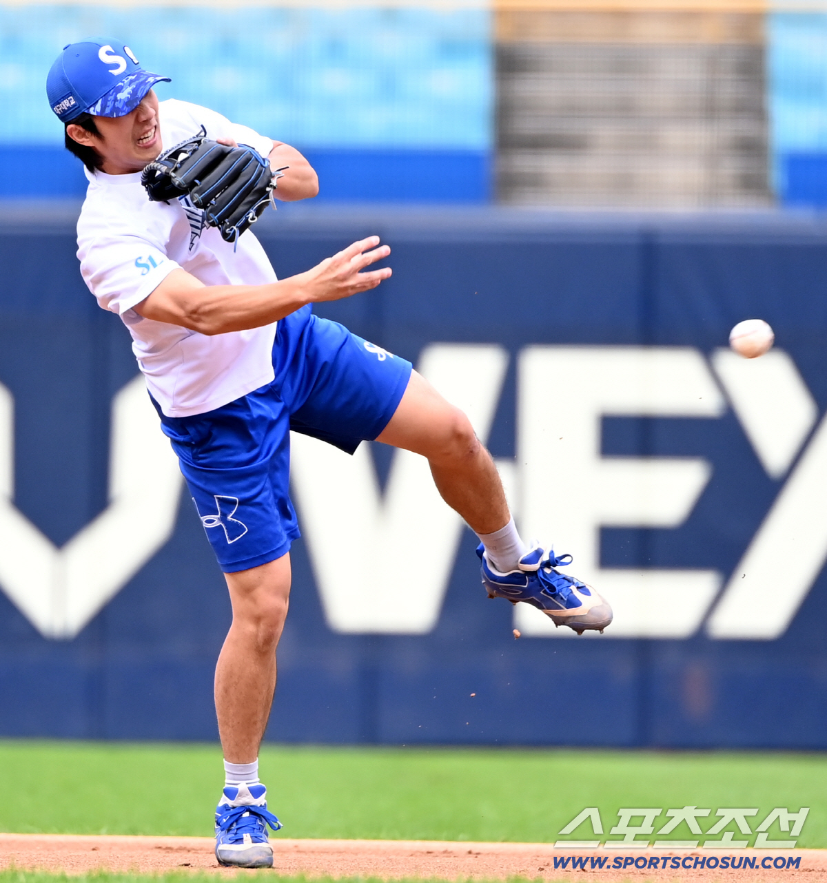 21일 대구 삼성라이온즈파크에서 열린 한화와 삼성의 플레이오프 3차전, 삼성 이재현이 수비훈련을 하고 있다. 대구=허상욱 기자wook@sportschosun.com/2025.10.21/