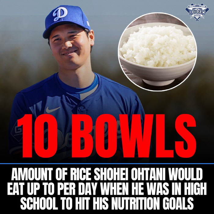 매체는 '오타니는 하루에 최대 10그릇의 밥을 먹었고, 이를 전략적으로 나누어 섭취했다'며 '아침에는 하루를 활기차게 시작하기 위해 3그릇을 먹었고, 밤에는 근육 회복과 성장을 위해 7그릇을 먹었다'라고 전했다.