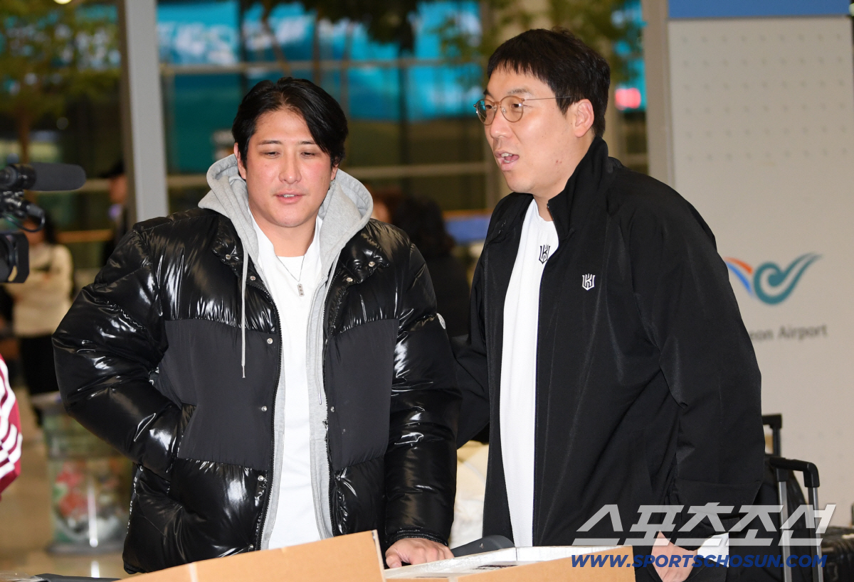 KT 위즈 선수단이 21일 인천국제공항을 통해 스프링캠프가 열리는 호주로 출국했다. 황재균, 김현수가 대화를 나누고 있다. 인천공항=박재만 기자 pjm@sportschosun.com
