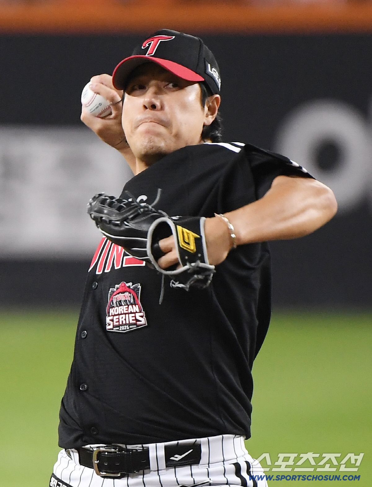 29일 대전 한화생명볼파크에서 열린 한국시리즈 3차전 한화 이글스와 LG 트윈스의 경기. LG 김진성이 역투하고 있다. 대전=박재만 기자 pjm@sportschosun.com/2025.10.29/