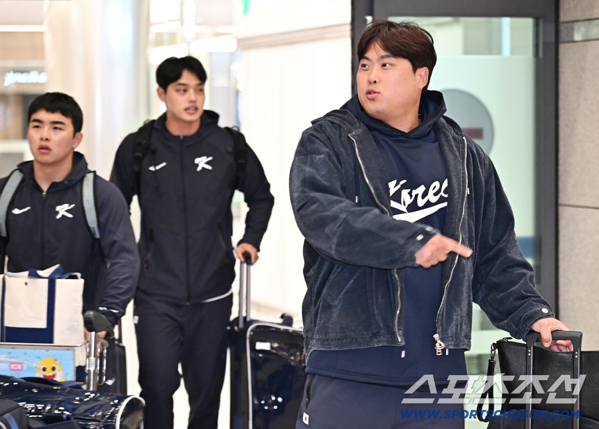 20일 오후 야구국가대표팀 선수들이 인천공항 제1터미널을 통해 귀국했다. 입국장을 나서고 있는 문현빈, 문동주, 류현진. 인천공항=송정헌 기자songs@sportschosun.com/2026.01.20/