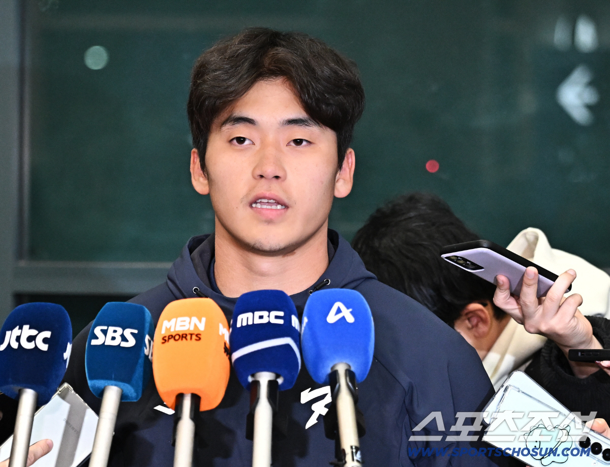 21일 오후 야구대표팀 선수들이 인천공항 제1터미널을 통해 귀국했다. 인터뷰하고 있는 박영현. 인천공항=송정헌 기자songs@sportschosun.com