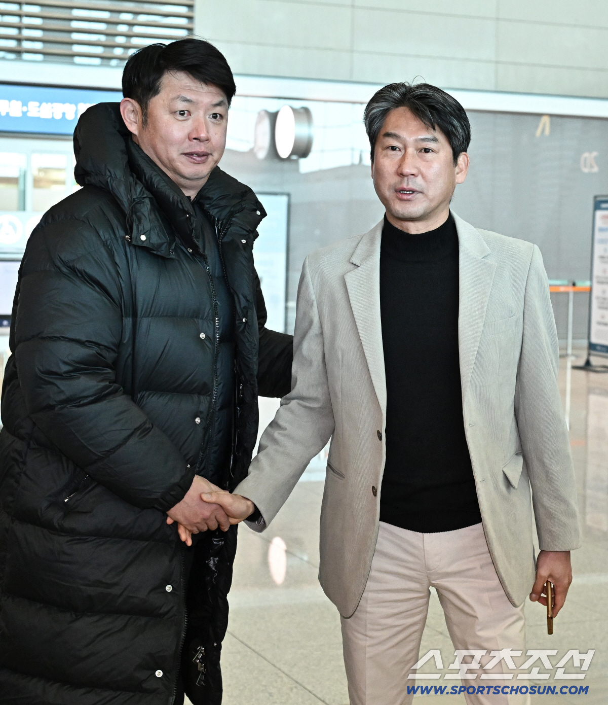 22일 키움 히어로즈 선수단이 인천공항 제2터미널을 통해 전지훈련을 위해 출국했다. 인사를 나누고 있는 오윤 2군 감독, 설종진 감독. 인천공항=송정헌 기자songs@sportschosun.com