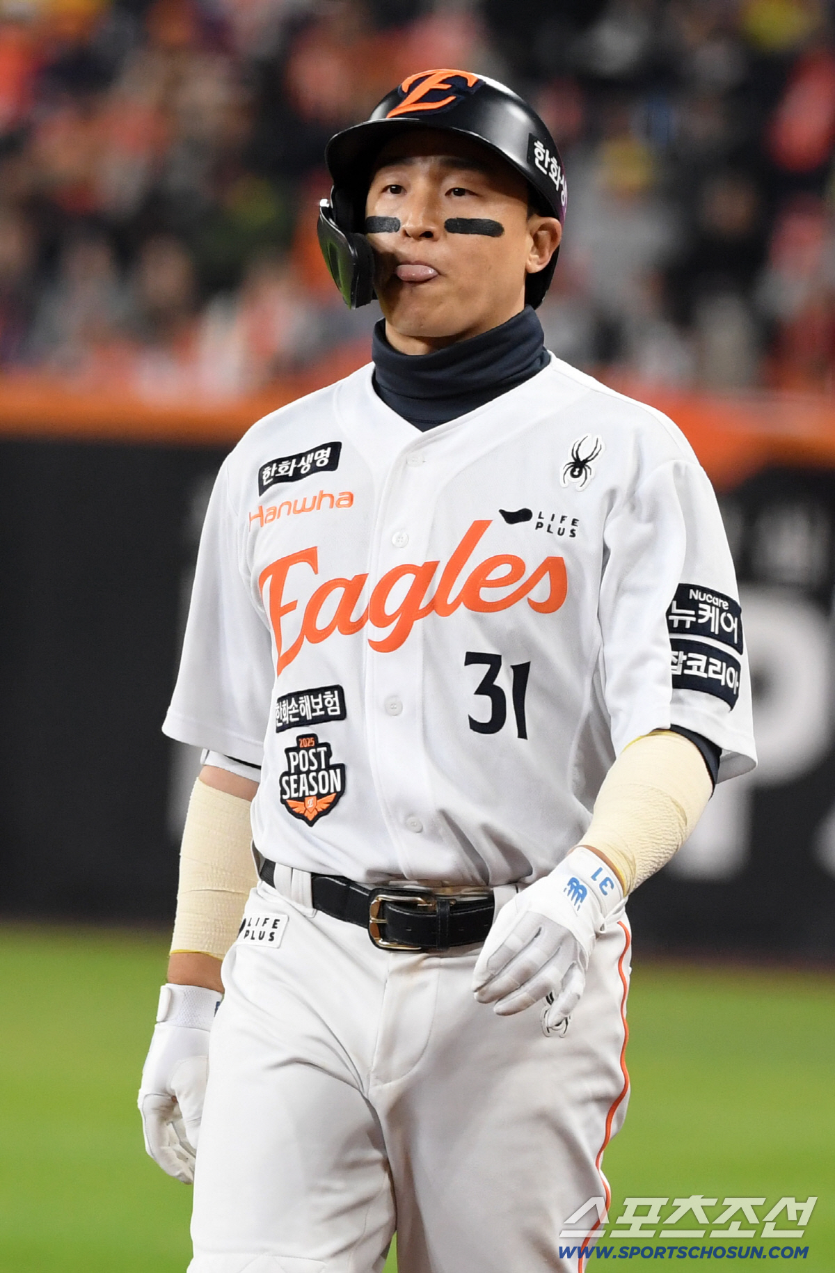 31일 대전 한화생명볼파크에서 열린 한국시리즈 5차전 한화 이글스와 LG 트윈스의 경기. 8회말 1사 1루 한화 손아섭이 병살타를 치고 있다. 대전=박재만 기자 pjm@sportschosun.com/2025.10.31/