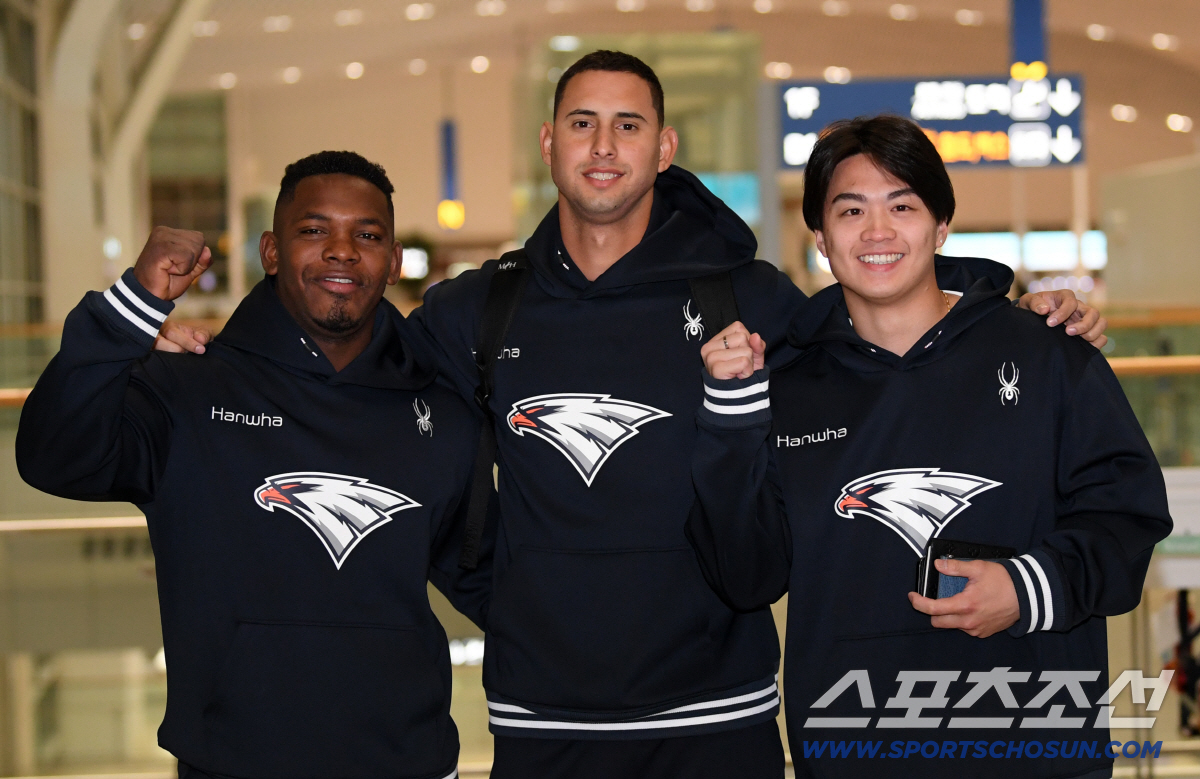 한화 이글스 선수단이 23일 인천국제공항을 통해 스프링캠프가 열리는 호주로 출국했다. 페라자, 에르난데스, 왕옌청이 출국장으로 향하고 있다. 인천공항=박재만 기자 pjm@sportschosun.com